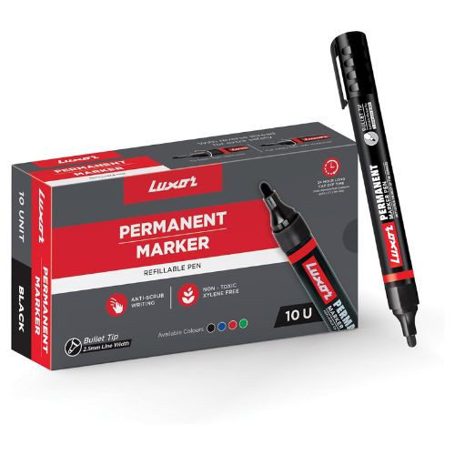 Luxor 1222 Refillable Permanent Marker – Black (Box of 10)